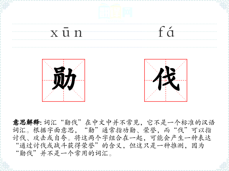 文化与社会背景: 在特定的文化或社会背景中,“勋伐”可能没有特别的意义或影响,因为它不是一个常用的词汇。