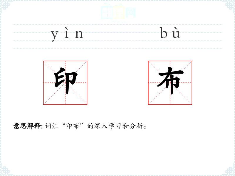 “印布”字面意思是指通过印刷技术在布料上印制图案或文字。基本含义包括在纺织品上进行图案或文字的复制,通常用于制作衣物、家居装饰品等。