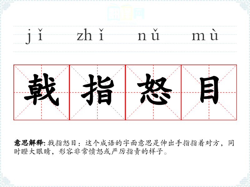 戟指怒目:这个成语的字面意思是伸出手指指着对方,同时瞪大眼睛,形容非常愤怒或严厉指责的样子。