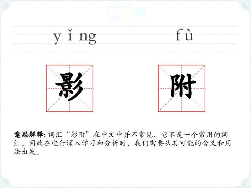 词汇“影附”在中文中并不常见,它不是一个常用的词汇,因此在进行深入学习和分析时,我们需要从其可能的含义和用法出发。