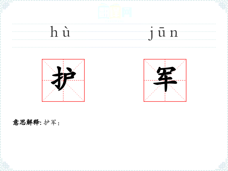 - 词源:护军一词源于古代汉语,最早见于《周礼》等古代文献。