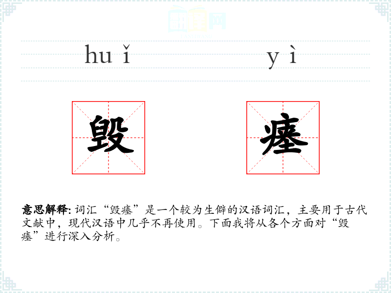 词汇“毁瘗”是一个较为生僻的汉语词汇,主要用于古代文献中,现代汉语中几乎不再使用。下面我将从各个方面对“毁瘗”进行深入分析。