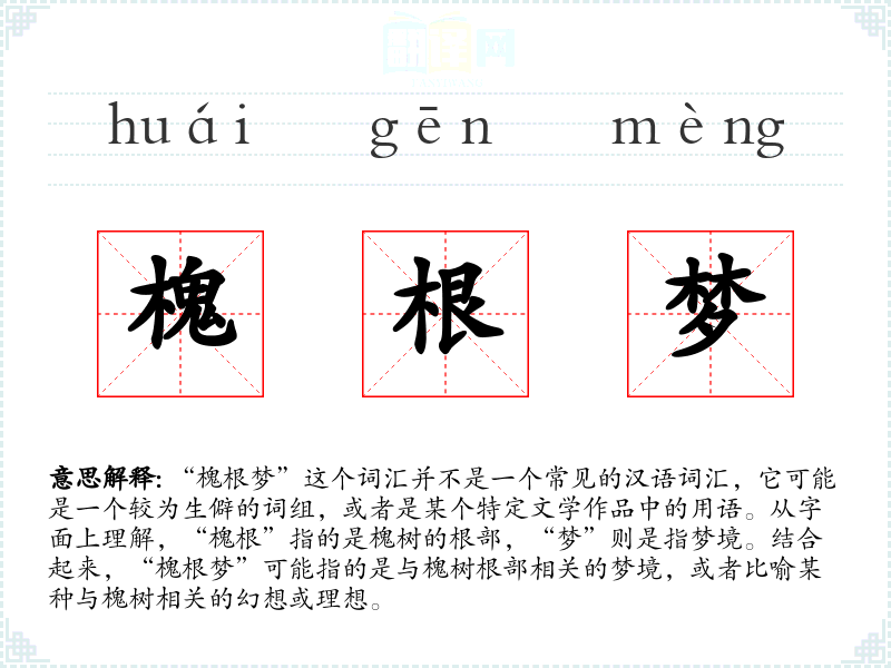 由于“槐根梦”不是一个常见的词汇,其词源和历史演变可能不太明确。它可能是某个特定文学作品中的创造性用语,或者是某个地区或社群中的传统说法。
