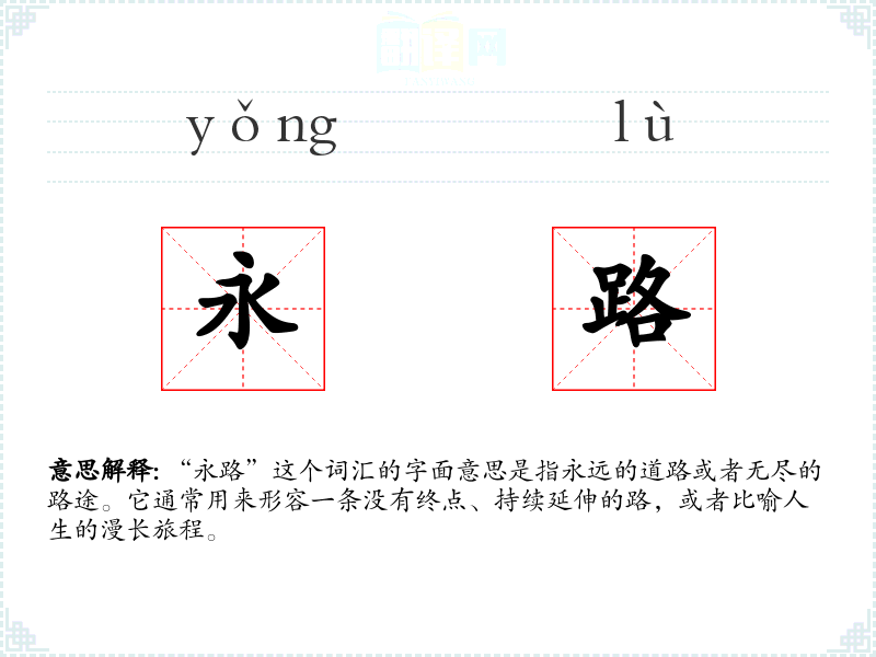 “永路”这个词汇在中文中历史悠久,其字面组合“永”表示永远,“路”表示道路,两者结合形成了其基本含义。在古代文学中,这个词汇就已经被广泛使用,用以表达人生的漫长和不易。