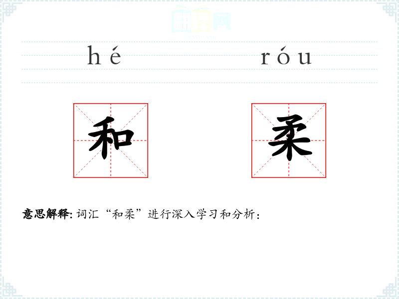 “和柔”这个词在汉语中具有丰富的文化内涵和情感价值。它不仅描述了一种外在的特质,也反映了内在的修养和态度。在语言学*和表达中,理解和运用“和柔”有助于培养和谐的人际关系和温和的沟通方式。