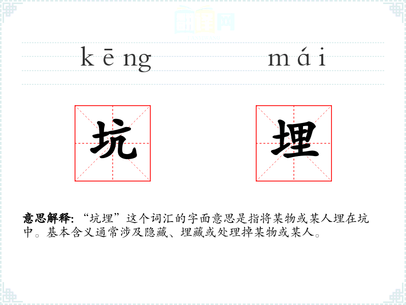 "坑埋"的意思解释、坑埋是什么意思由翻译网汉语词典查词提供。