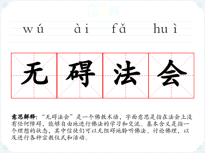 - 细微差别:这些词汇都强调了法会的自由和开放性,但“无碍法会”更侧重于无障碍的交流和学*。