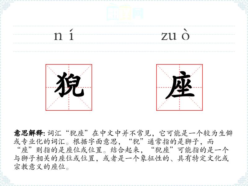 - 专业领域:在艺术史、研究或古代文化研究中,“猊座”可能被用来描述特定的艺术品或物品。