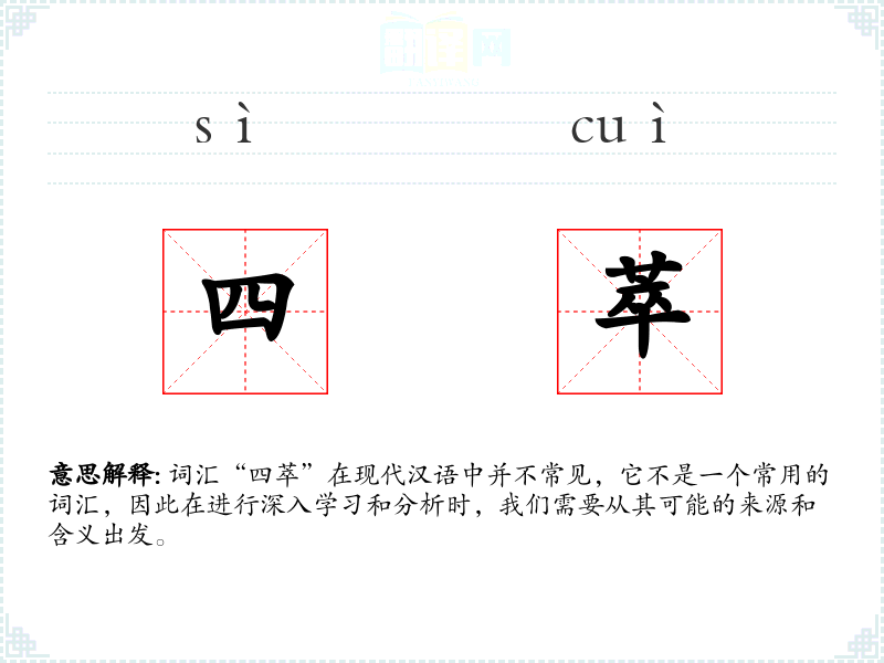 词汇“四萃”在现代汉语中并不常见,它不是一个常用的词汇,因此在进行深入学习和分析时,我们需要从其可能的来源和含义出发。