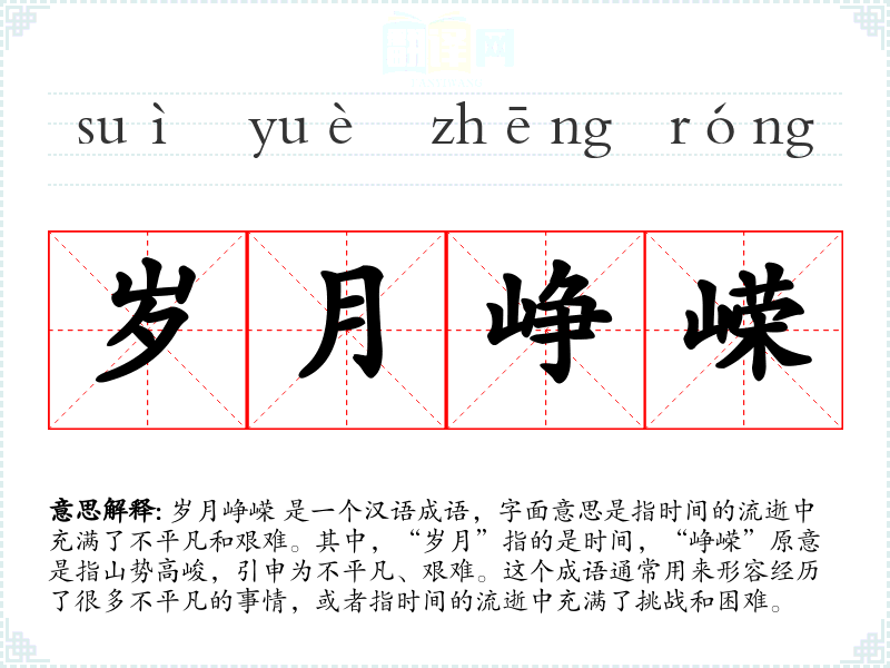 - suì yuè zhēng róng岁月峥嵘