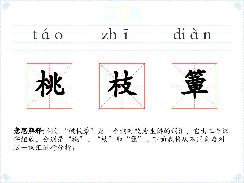词汇“桃枝簟”是一个相对较为生僻的词汇,它由三个汉字组成,分别是“桃”、“枝”和“簟”。下面我将从不同角度对这一词汇进行分析: