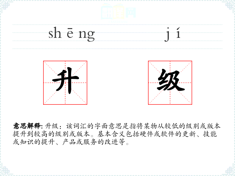 "升级"的意思解释、升级是什么意思由翻译网汉语词典查词提供。