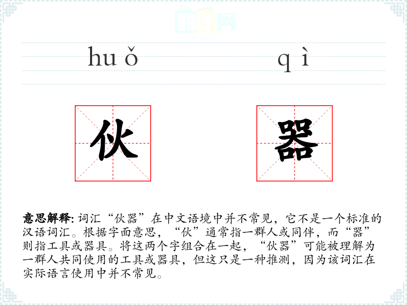 跨文化比较方面,由于“伙器”不是一个常用词汇,我们无法比较它在不同语言或文化中的对应词汇及其使用情况。