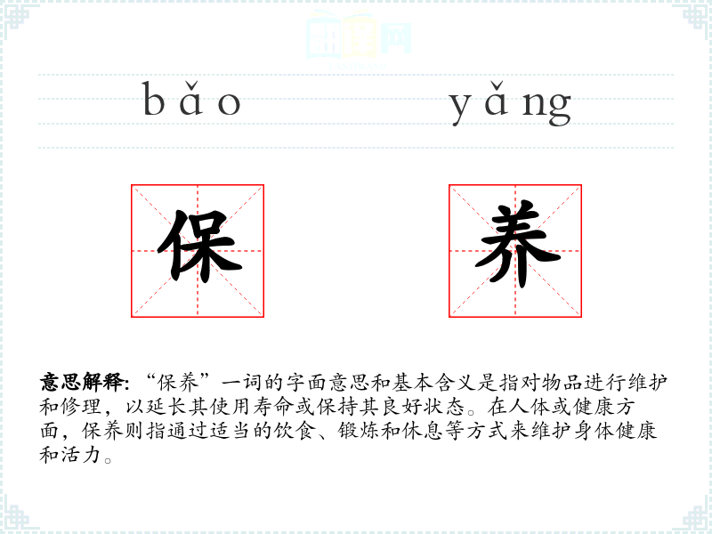 "保养"的意思解释、保养是什么意思由翻译网汉语词典查词提供。