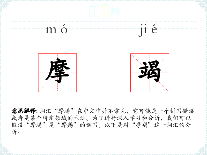 词汇“摩竭”在中文中并不常见,它可能是一个拼写错误或者是某个特定领域的术语。为了进行深入学*和分析,我们可以假设“摩竭”是“摩羯”的误写。以下是对“摩羯”这一词汇的分析:
