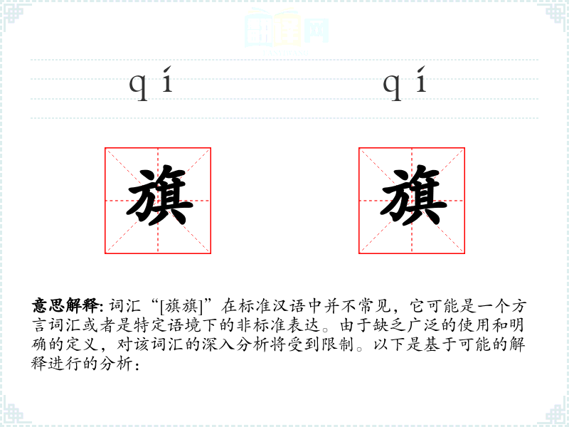 由于“旗旗”不是一个广泛认知的词汇,上述分析更多是基于假设和可能的解释。在实际的语言学习和使用中,应根据具体语境来理解和应用。