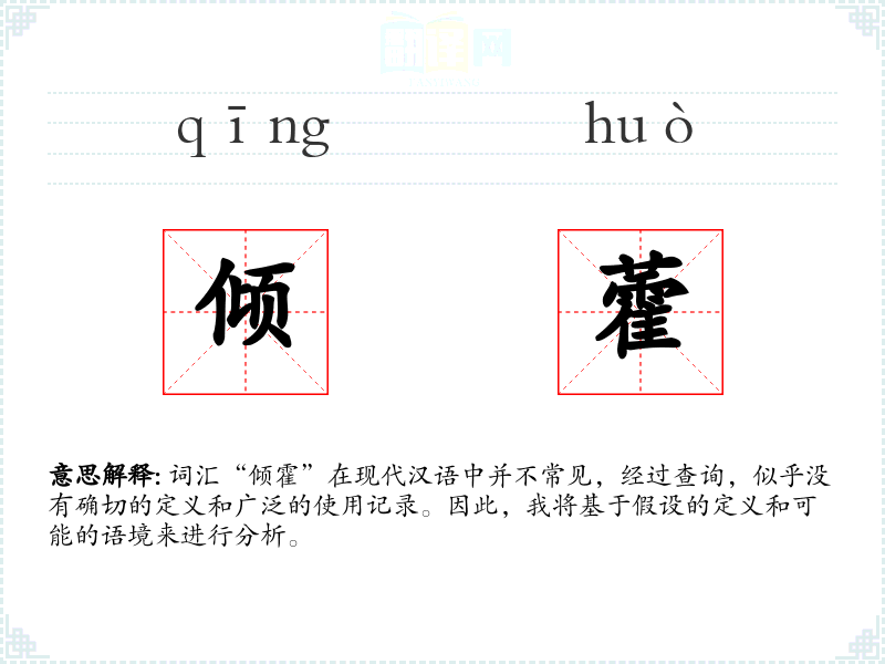 词汇“倾霍”在现代汉语中并不常见,经过查询,似乎没有确切的定义和广泛的使用记录。因此,我将基于假设的定义和可能的语境来进行分析。