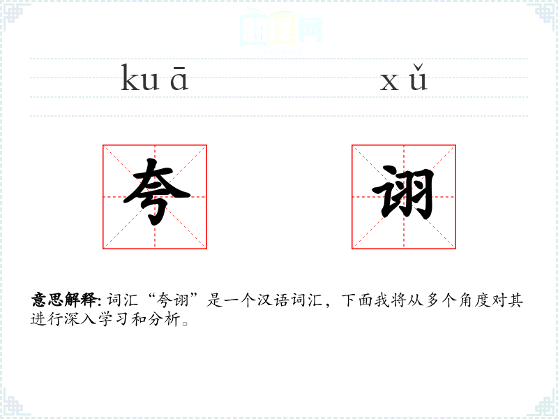 词汇“夸诩”是一个汉语词汇,下面我将从多个角度对其进行深入学*和分析。