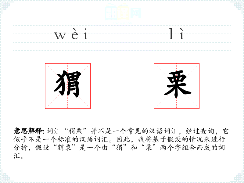 词汇“猬栗”并不是一个常见的汉语词汇,经过查询,它似乎不是一个标准的汉语词汇。因此,我将基于假设的情况来进行分析,假设“猬栗”是一个由“猬”和“栗”两个字组合而成的词汇。