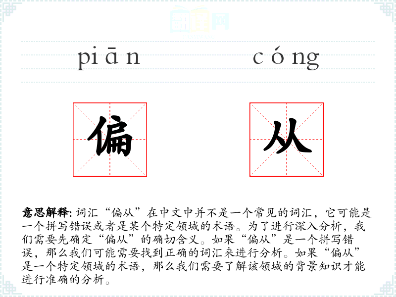 词源与演变:由于“偏从”不是一个标准词汇,我们无法探讨其词源和演变。