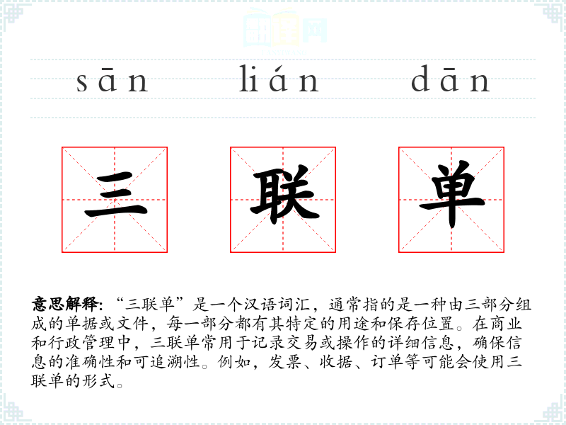 三联单的分字解释