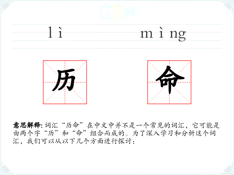 - 反义词:(由于“历命”不是一个常用词汇,反义词可能不太明确)