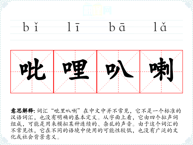 由于“吡里叭喇”不是一个标准词汇,我们无法对其进行深入的分析和理解。在语言学习和表达中,我们应当关注那些有明确定义和广泛使用的词汇,以确保沟通的有效性和准确性。