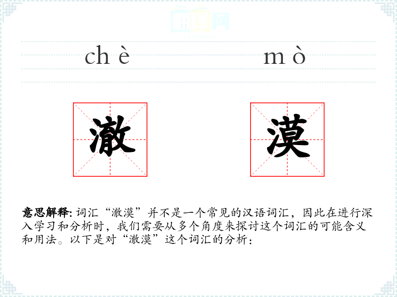 词汇“澈漠”并不是一个常见的汉语词汇,因此在进行深入学习和分析时,我们需要从多个角度来探讨这个词汇的可能含义和用法。以下是对“澈漠”这个词汇的分析: