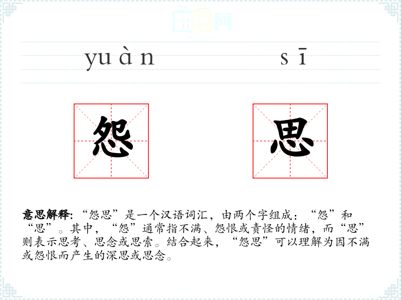 - 怨恨:强调强烈的恨意,比“怨思”更直接和强烈。