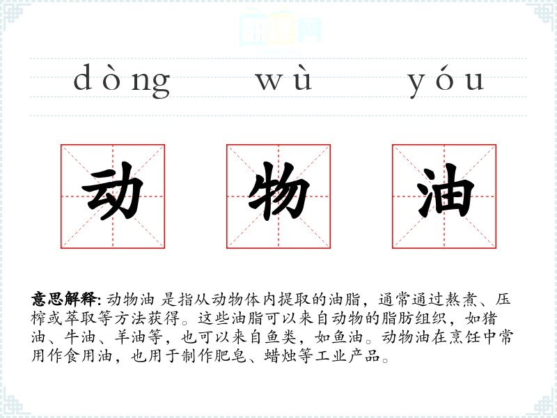 "动物油"的意思解释、动物油是什么意思由翻译网汉语词典查词提供。