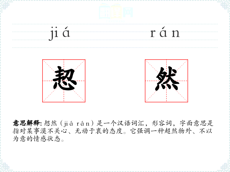 恝然(jiá rán)是一个汉语词汇,形容词,字面意思是指对某事漠不关心、无动于衷的态度。它强调一种超然物外、不以为意的情感状态。