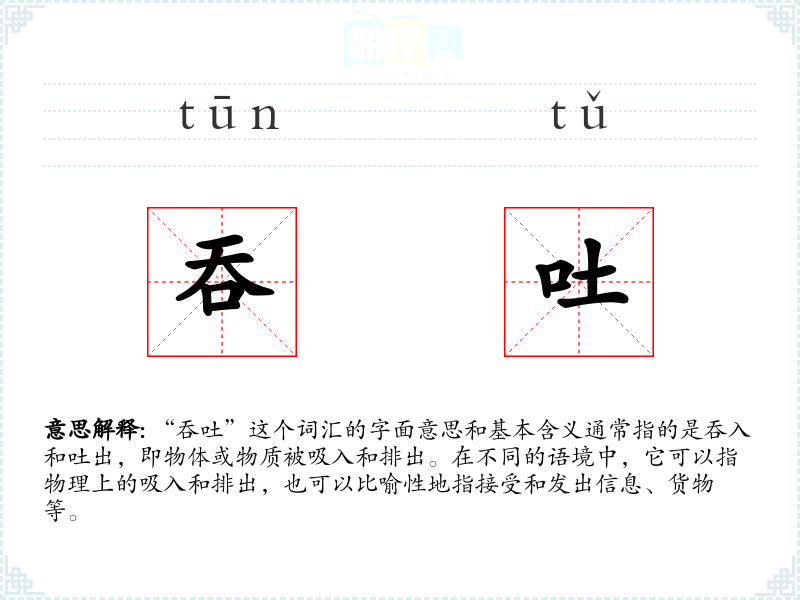 “吞吐”这个词汇的词源较为直接,由“吞”和“吐”两个动词组合而成,表示吸入和排出的动作。在古代汉语中,这两个字就已经存在,并且组合使用来表示这一含义。随着时间的推移,其使用范围逐渐扩大,从物理动作扩展到比喻性的用法。