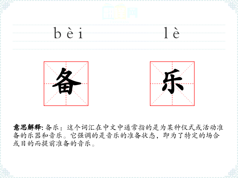 “备乐”一词源自古代汉语,其中“备”意味着准备,“乐”指的是音乐。随着时间的推移,这个词的含义基本保持不变,但在现代汉语中使用频率较低。