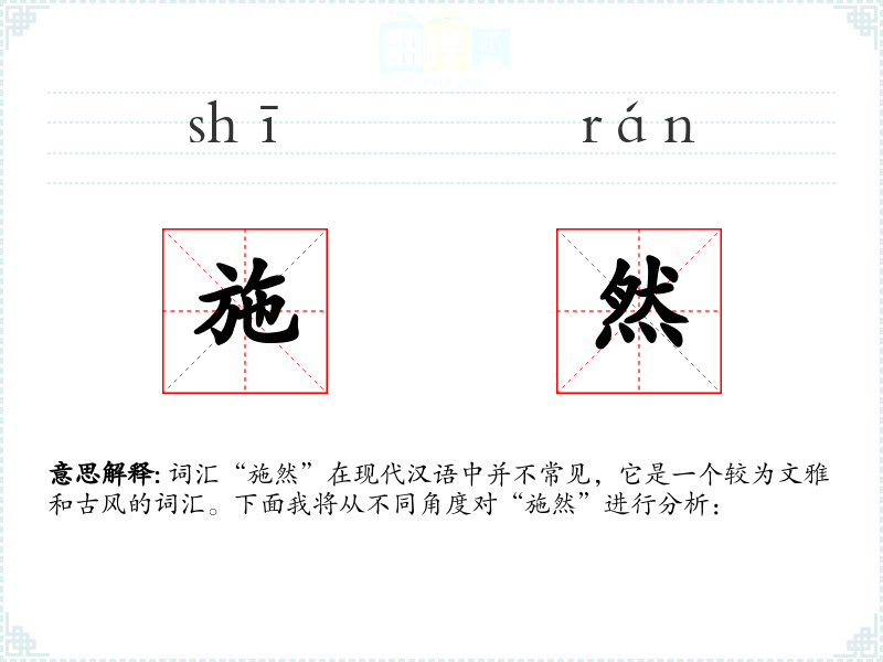 “施然”这个词虽然在现代汉语中不常见,但它蕴含的“自然”和“从容”的意境是值得我们学和追求的。在语言学和表达中,适当地使用这样的词汇可以增加语言的丰富性和文雅性。