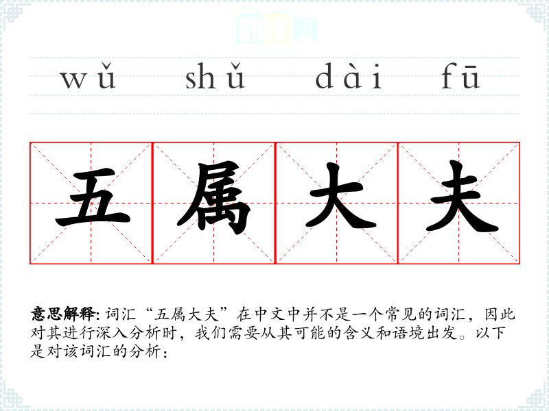 词汇“五属大夫”在中文中并不是一个常见的词汇,因此对其进行深入分析时,我们需要从其可能的含义和语境出发。以下是对该词汇的分析: