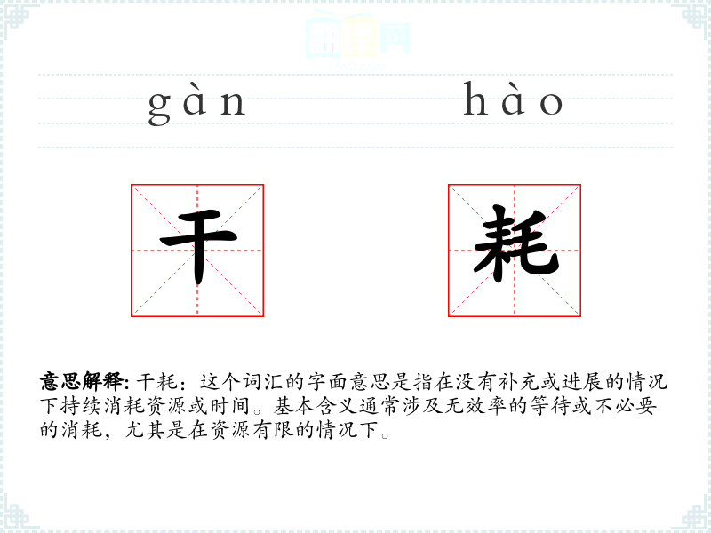 干耗:这个词汇的字面意思是指在没有补充或进展的情况下持续消耗资源或时间。基本含义通常涉及无效率的等待或不必要的消耗,尤其是在资源有限的情况下。