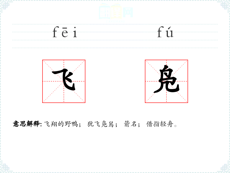 飞翔的野鸭; 犹飞凫舃; 箭名; 借指轻舟。