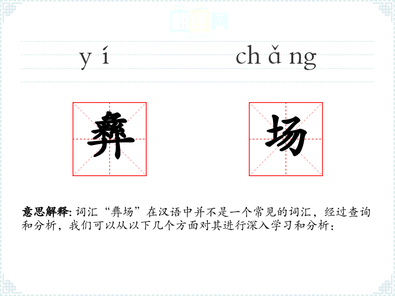 词汇“彝场”在汉语中并不是一个常见的词汇,经过查询和分析,我们可以从以下几个方面对其进行深入学*和分析: