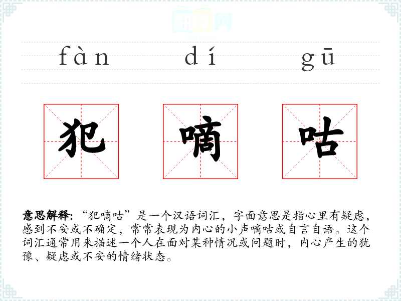- 专业领域:在心理学或社会学领域,可能会用“犯嘀咕”来描述个体在特定社会情境下的心理反应。