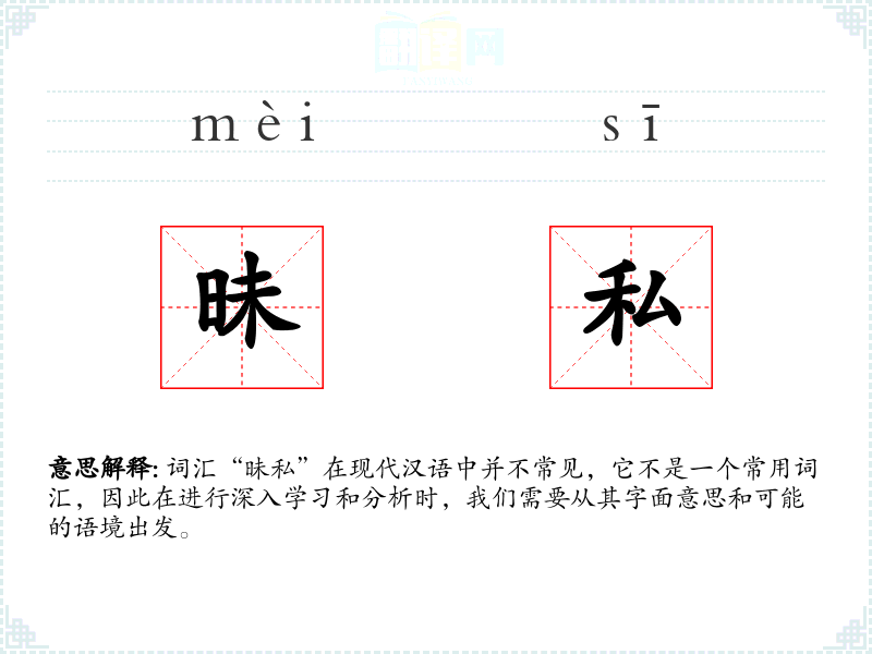 词汇“昧私”在现代汉语中并不常见,它不是一个常用词汇,因此在进行深入学*和分析时,我们需要从其字面意思和可能的语境出发。