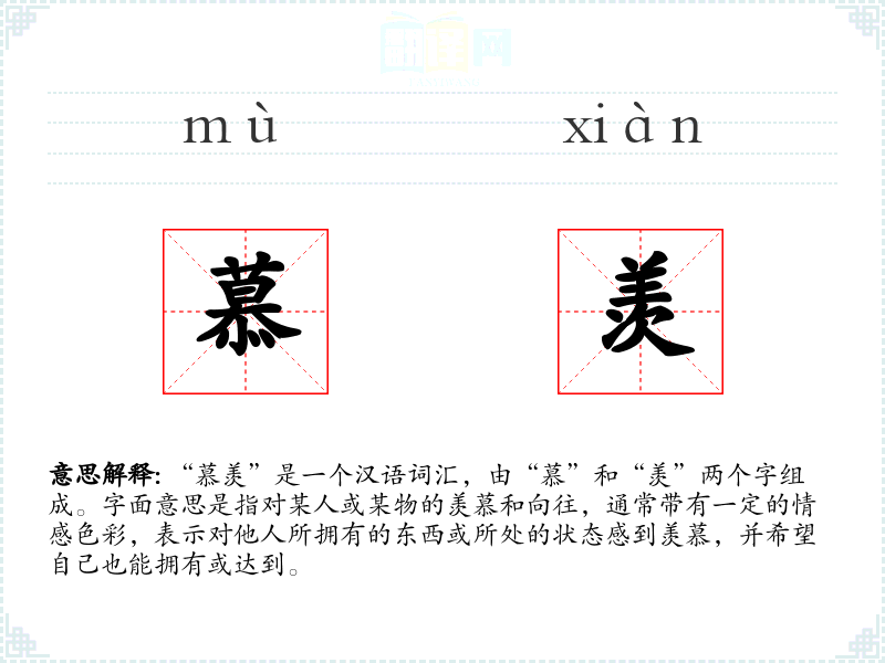 “慕”字古已有之,原意为思念、向往,如《诗经》中的“慕之”。“羡”字则有羡慕、贪求之意。两者结合,形成了“慕羡”这一词汇,表达了更强烈的向往和羡慕情感。