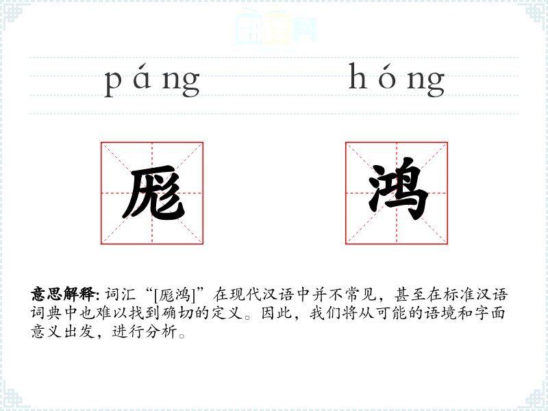 词汇“[厖鸿]”在现代汉语中并不常见,甚至在标准汉语词典中也难以找到确切的定义。因此,我们将从可能的语境和字面意义出发,进行分析。