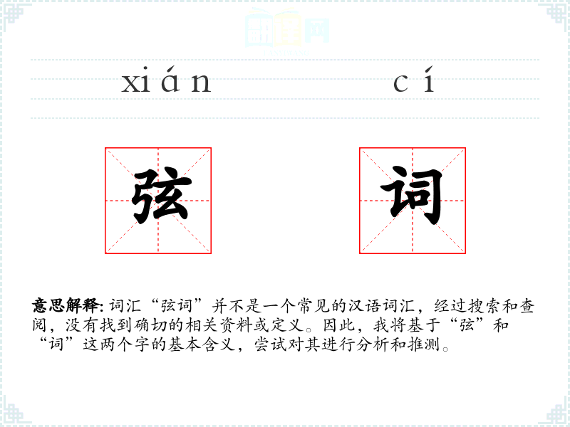 - 反义词:由于“弦词”不是一个标准词汇,反义词可能不适用。