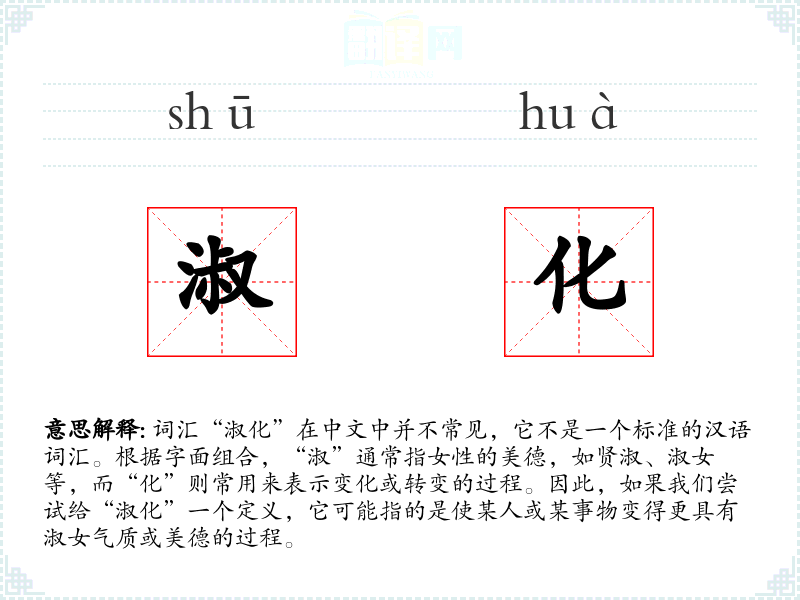 在**传统文化中,淑女形象一直受到推崇,因此“淑化”可能与传统价值观中的女性美德教育有关。