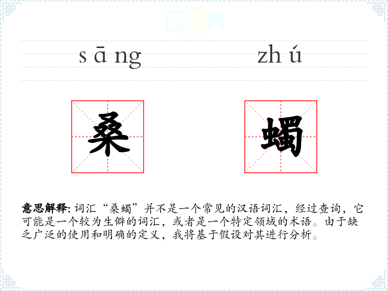 词汇“桑蠋”并不是一个常见的汉语词汇,经过查询,它可能是一个较为生僻的词汇,或者是一个特定领域的术语。由于缺乏广泛的使用和明确的定义,我将基于假设对其进行分析。
