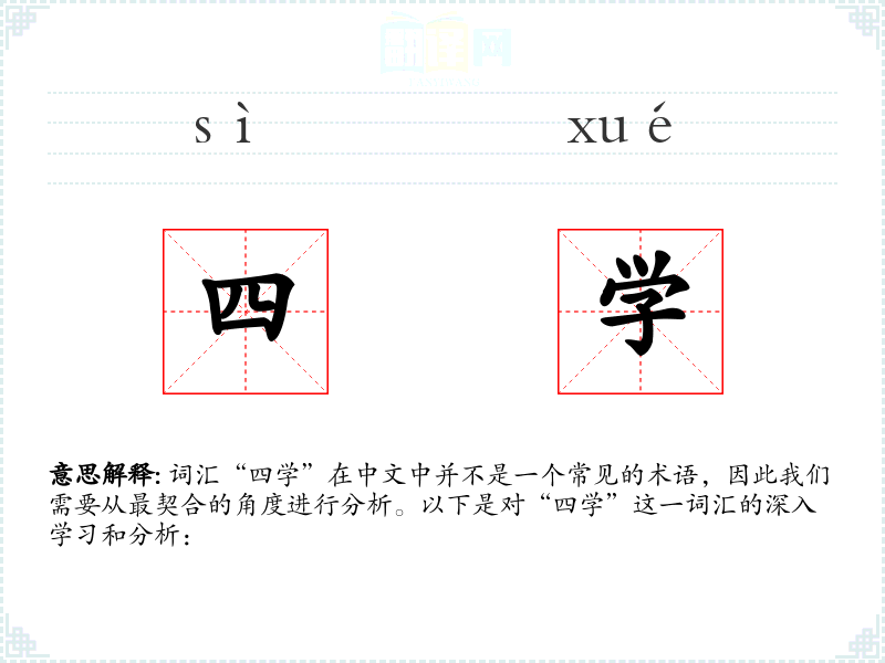 在*传统文化中,“四学”与儒家教育紧密相关,强调道德修养和学术研究。在现代社会,这个词可能被用来强调跨学科学和综合素质教育。