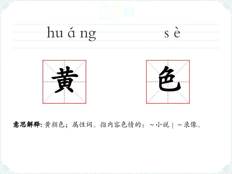 黄颜色;属性词。指内容色情的:~小说|~录像。