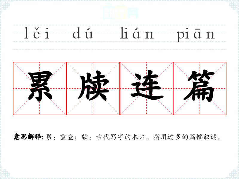 累:重叠;牍:古代写字的木片。指用过多的篇幅叙述。