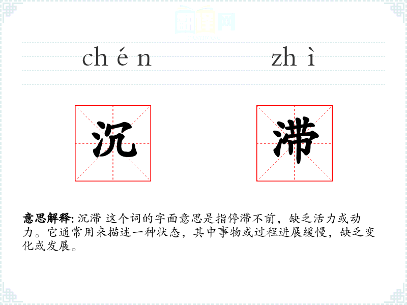 - 专业领域:在经济学中,“沉滞”可能用来描述经济增长的停滞状态。