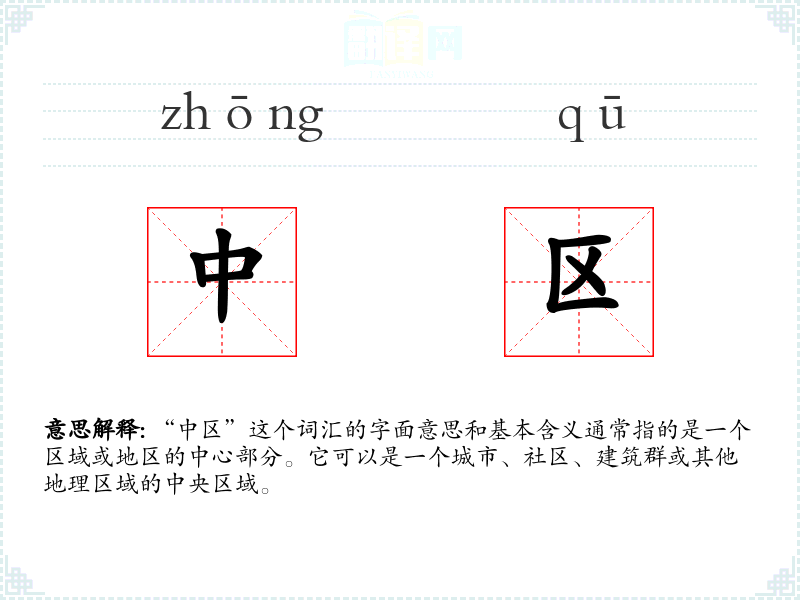 - 专业领域:在城市规划或地理学中,“中区”可能特指城市的商业或行政中心。